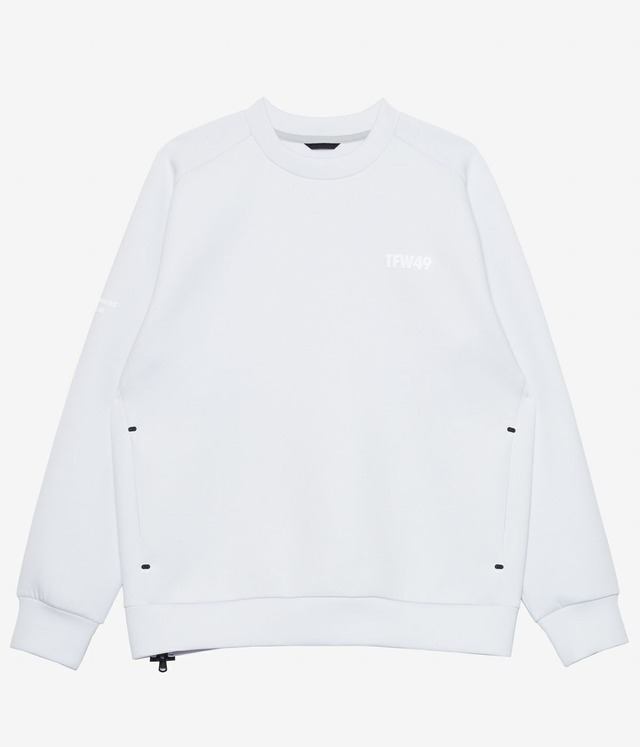 もちもち素材で上品に仕上げた“CARDBOARD MATERIAL CREW” 軽やかさと高級感を兼ね備えたユニセックス仕様のクルーネック。 スポンジを挟み込んだような嵩高で軽量なダンボール素材を採用。もちもちとした弾力のある肉感と、シルキータッチの滑らかな肌触りが特徴です。着心地の良さと素材感が、ワンランク上の印象を演出します。 シンプルで洗練されたシルエットは、上品でスタイリッシュな雰囲気をプラス。後裾には止水ファスナーを配置し、機能性だけでなくハイテク感のあるアクセントを効かせています。ユニセックス仕様なので、性別を問わず幅広いスタイリングに対応可能です。 ゴルフシーンからタウンユースまで活躍できる万能アイテム。機能性とデザインを兼ね備えた一枚は、シーズンを通して重宝すること間違いなしです。