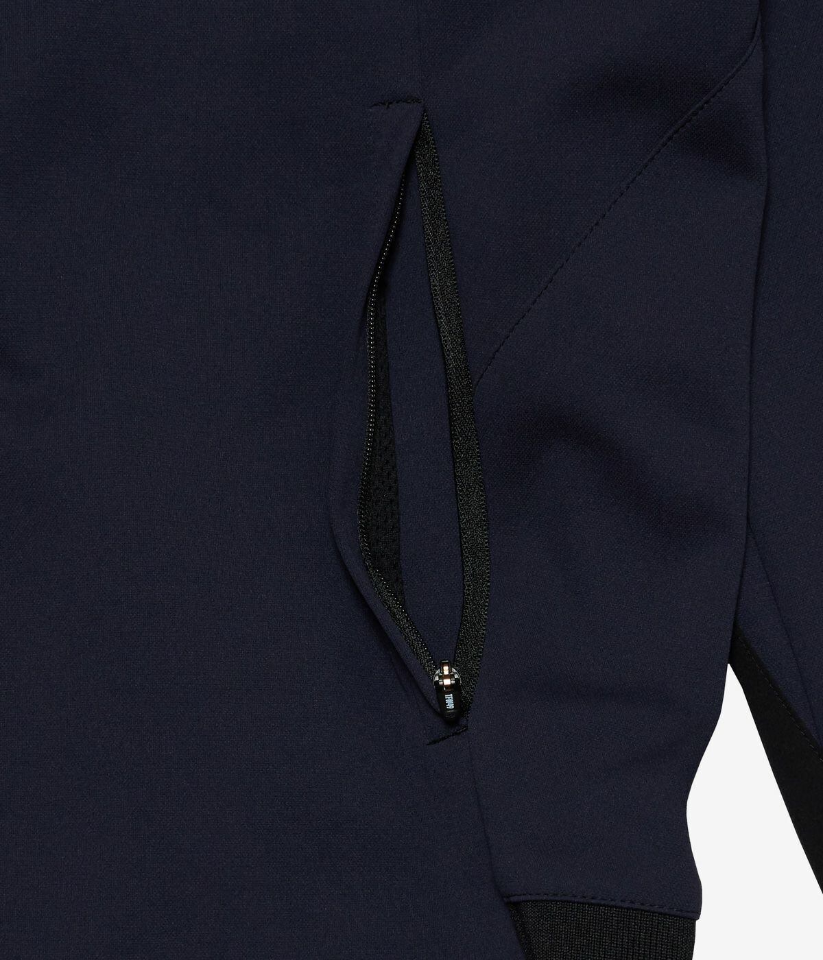 高機能素材の融合によって快適性を追求した一枚。ゴルフやトレーニングなどで、存在感を放つ万能なトラックジャケットです。