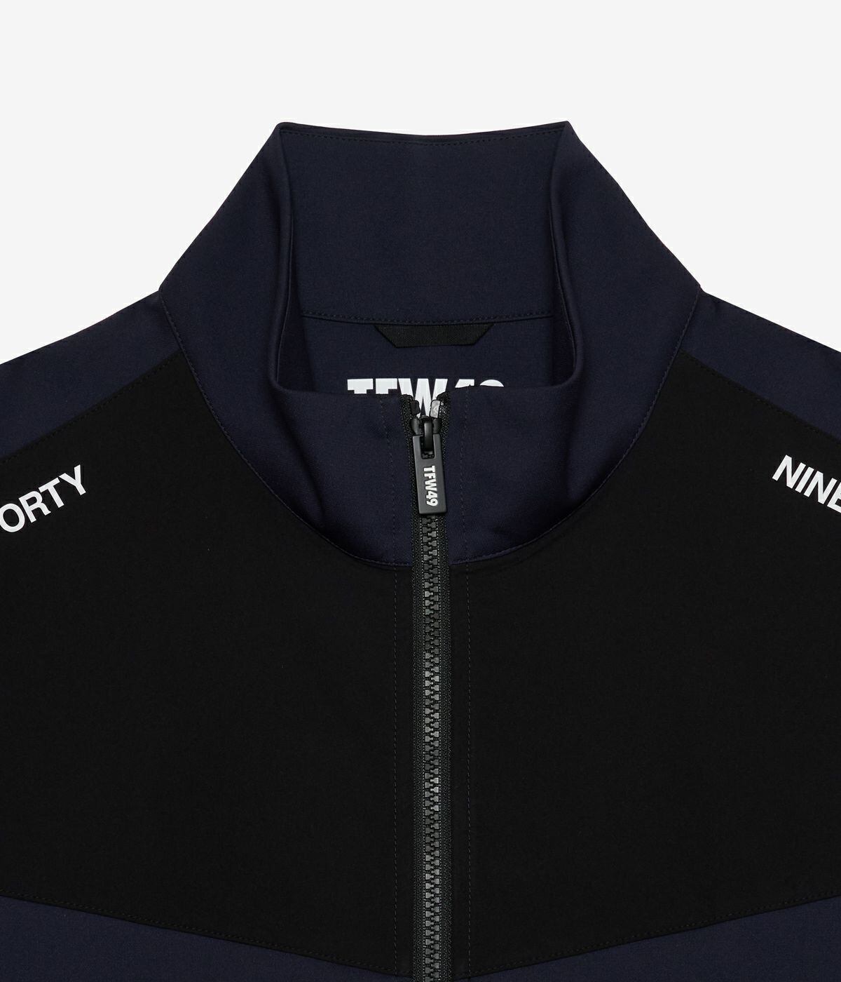 前後身頃や袖下の切替部分には、質感の異なるドライタッチのストレッチ素材を採用。マットな質感のコントラストが、立体感のあるスポーティーな印象を演出します。袖口と裾にはリブ仕様を施し、風の侵入を防ぎつつ保温性とフィット感を両立。軽量ながら機能性に優れた仕上がりです。