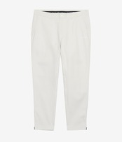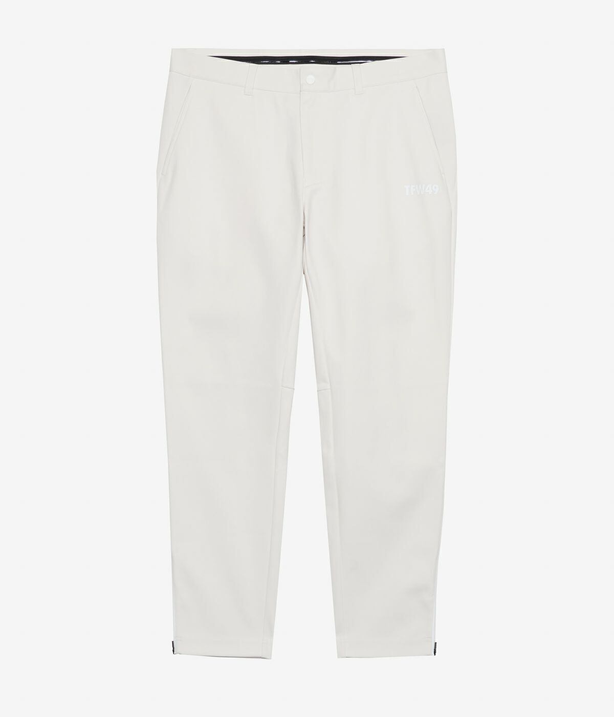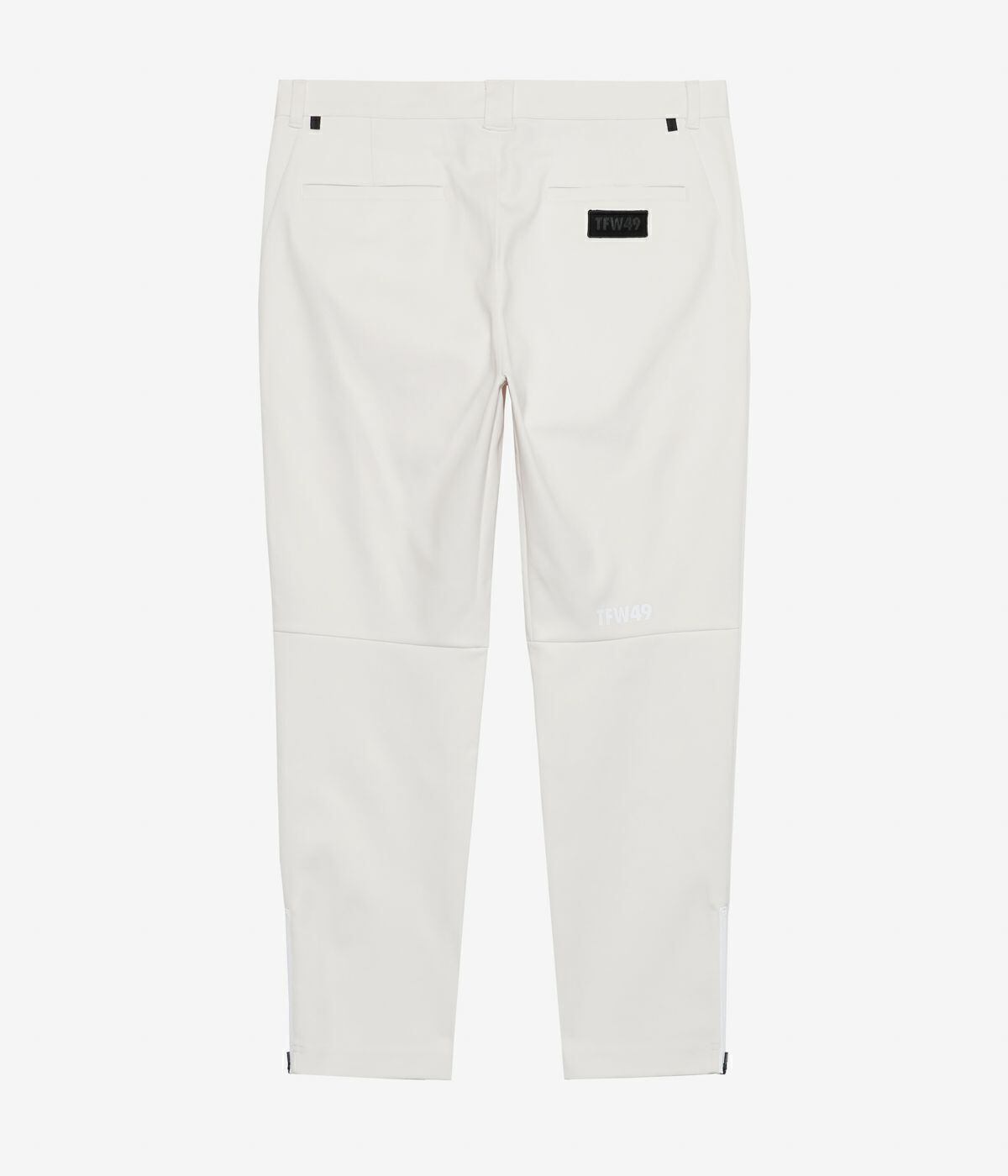 裾にはファスナーを配し、脱着を容易にするとともにデザインのアクセントとしても機能。後ろウエストのループやベルクロ仕様のバックポケットなど、ゴルフシーンに嬉しい実用的ディテールを搭載しています。程よくテーパードしたシルエットが脚を美しく見せ、スタイリッシュな印象を演出。