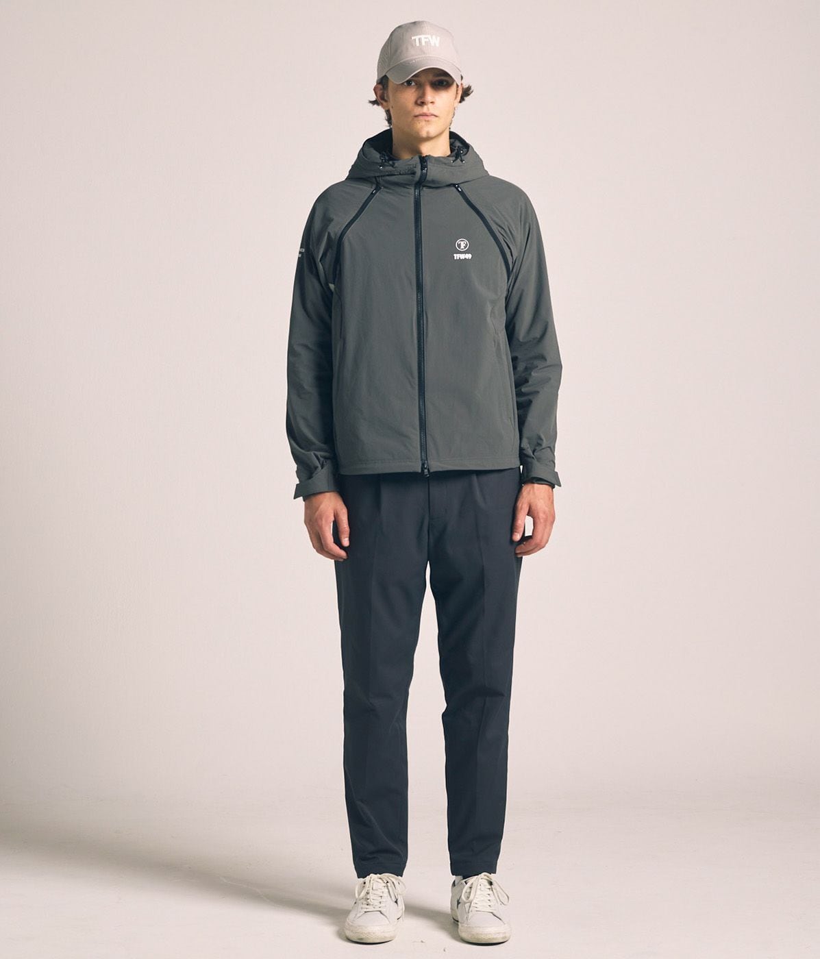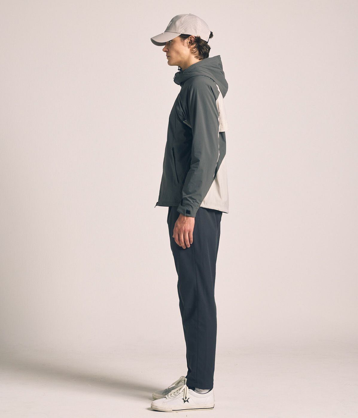 シルエットはアクティブに動きやすい立体構造。袖口のタブや裾のスピンドルでフィット感や温度調整が可能。さらに袖を取り外すことでベストとしても着用でき、季節やスタイルに合わせた幅広いアレンジが楽しめます。スポーティーさとファッション性を兼ね備えた、多目的で使える優秀アウターです。
